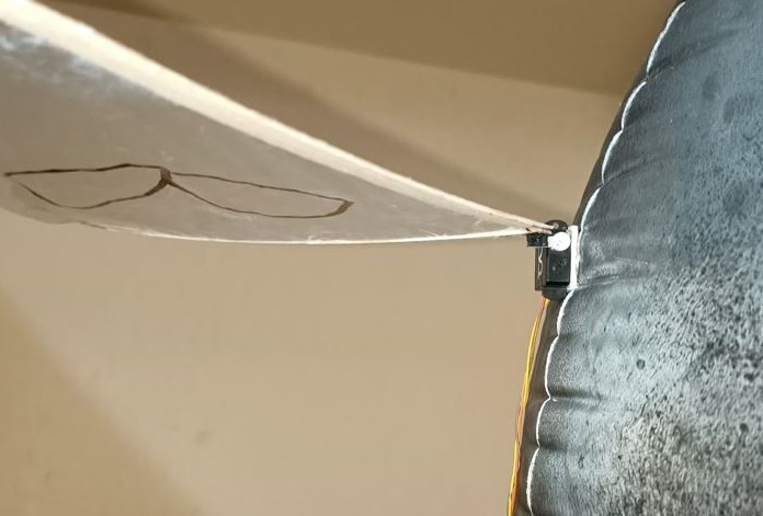 Now the servo horns can be glued onto the fins to allow for attaching to the servos. Take care when gluing them so that there is enough clearance between the fin and the servo’s body to allow for its full range of motion. With the fins and servos in the photos, it was best to glue the servo horns such that when attached to the servo, the wood of the fin is on the side of the servo where the output gear is closer to the edge.