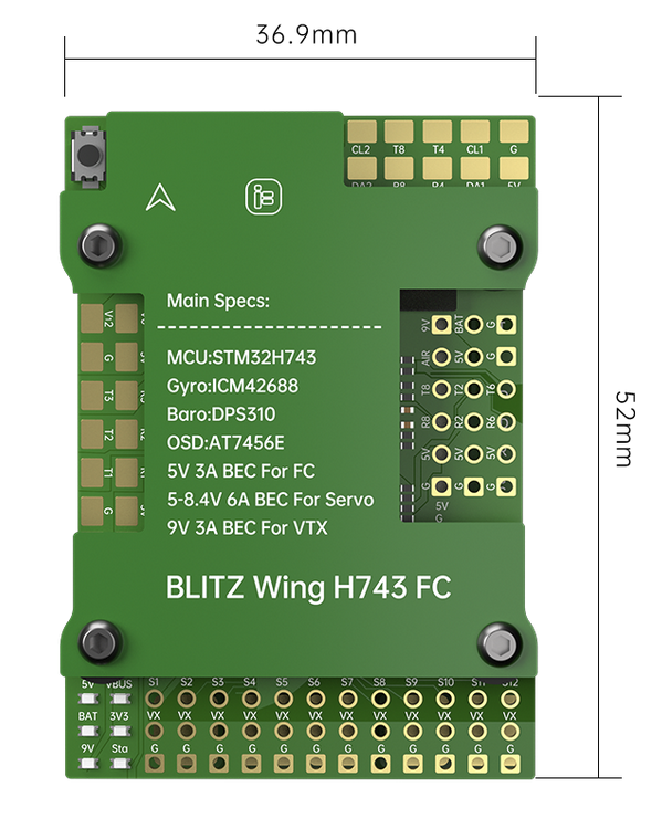 The BLITZ Wing H743 is a flight controller produced by iFlight.