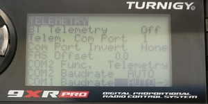 This section describes how to enable FrSky telemetry on the Turnigy 9XR Pro transmitter.