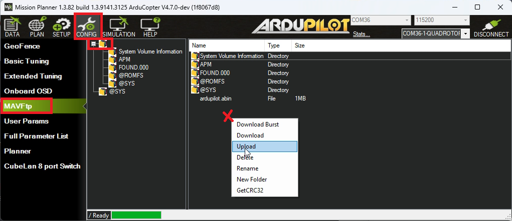 You can also transfer the file to the SD card’s base directory via MAVFTP using Mission Planner or similar GCS