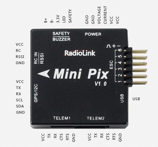This hardware comes preflashed with a RadioLink-branded version of ArduCopter and an ArduPilot-compatible bootloader. To use non-branded ChibiOS-based ArduPilot firmware versions, download the required vehicle firmware .apj file from https://firmware.ardupilot.org/ and flash your board using MissionPlanner’s “custom firmware” option.