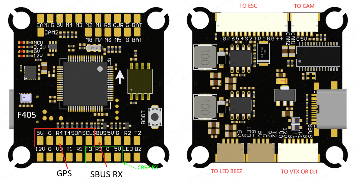 The SPEDIX F405 is a flight controller based on the STM32F405 MCU.