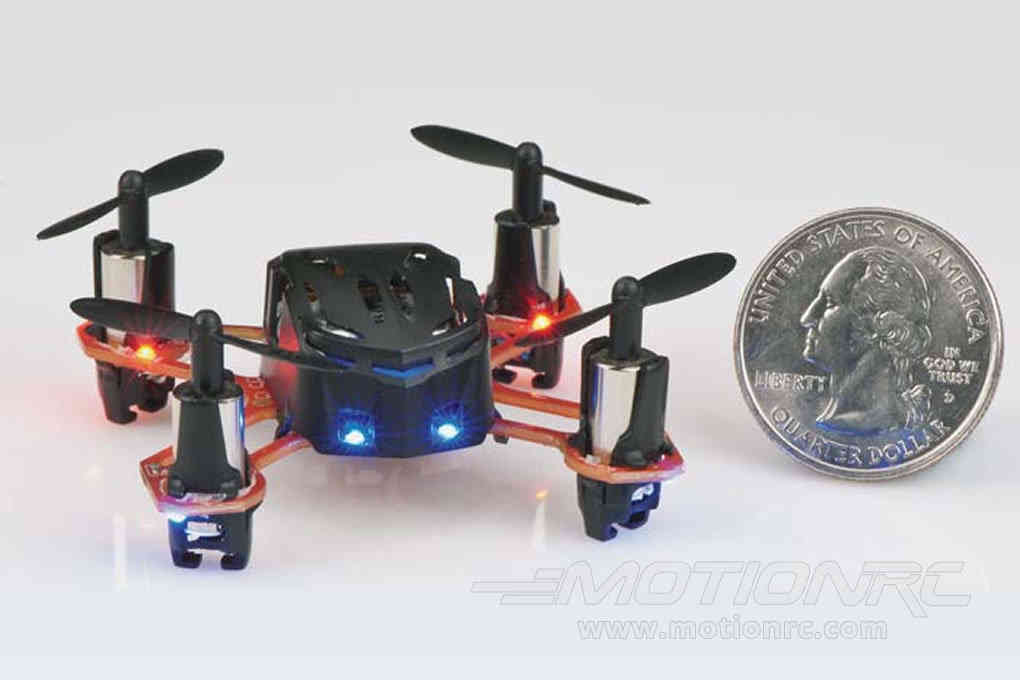 The reduction in prop size and increase in prop speed result in a smoother flight than an equivalent large blade Quadcopter.
