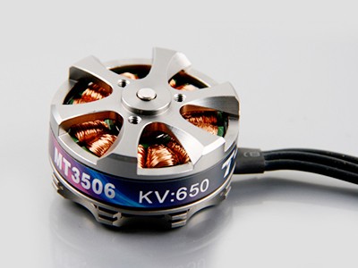 The brushless out-runner motors have to support the full weight of the copter continuously while turning at high speed.