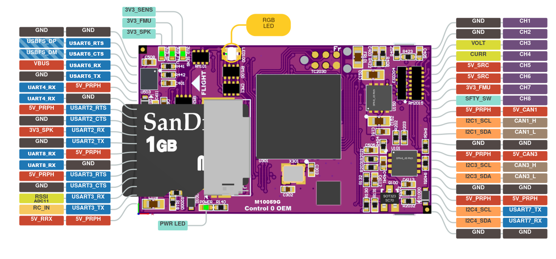 The Control Zero H7 OEM revision G is a flight controller produced by 3DR (mRo)]