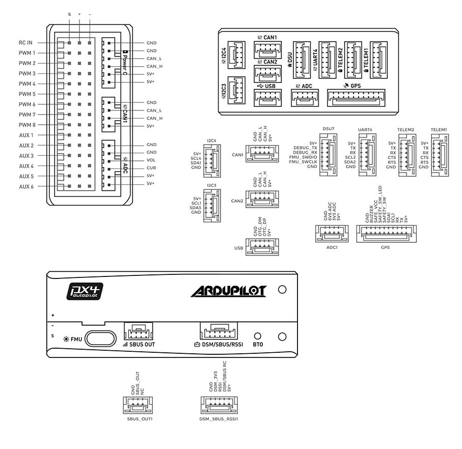 • High-voltage capable servo rail, up to 36V (servo rail does not power the autopilot)