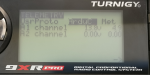 Model Setupmenu, then selectTelemetry, and then again selectTelemetryfrom the popup menu. Ensure thatUsrProtois set toArduP(for ArduPlane) orArduC(for ArduCopter),Telemetry Com Port(previouslyFrSky Com Port) is1, andCom Port Invert(previouslyInvert Com 1) is off (unchecked).If you are using something other than ArduPlane or ArduCopter, you can set