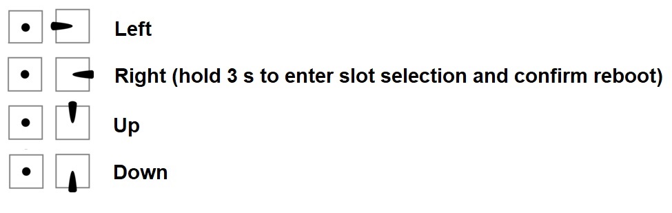 The RC transmitter’s roll and pitch stick input is used to navigate through the screen, pick a parameter and adjust the parameter value. Parameter values can be adjusted in disarmed state only.