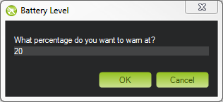 Simply check the MP Alert on Low Battery checkbox and enter the warning you wish to hear, the voltage level and finally the percentage of remaining current.
