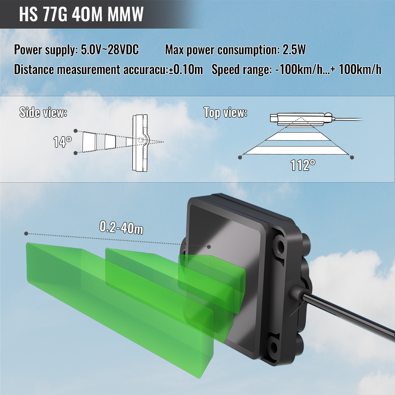 The Hexsoon HS77G MMW radar (available in 20m, 40m, and 80m versions) are 77Ghz-band radar useful for horizontal object avoidance