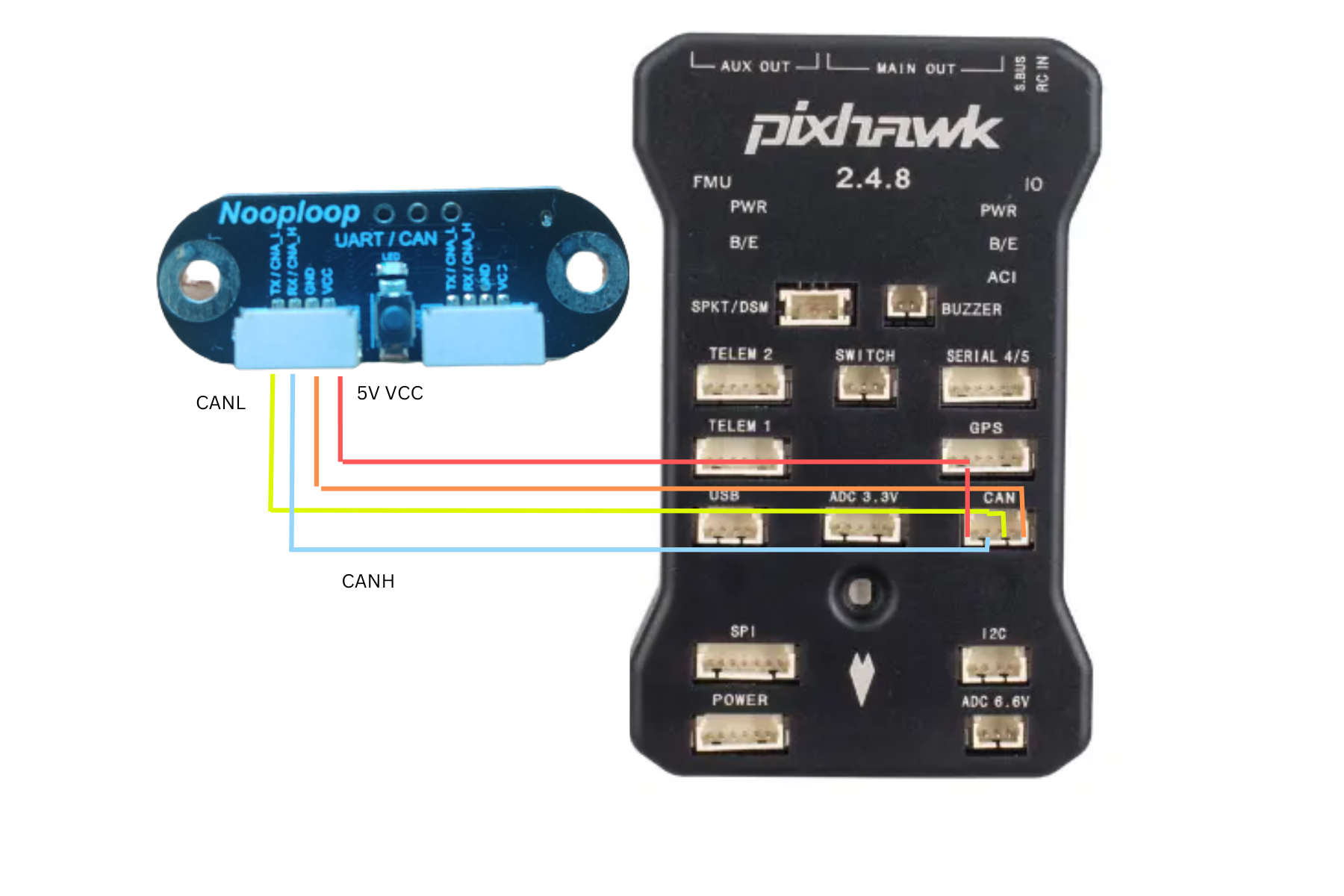 The 4 Pin JST-GH connector wiring of the sensor does not match with the CAN wiring of most autopilots. Wiring incorrectly can lead to damaged sensor and/or autopilot.