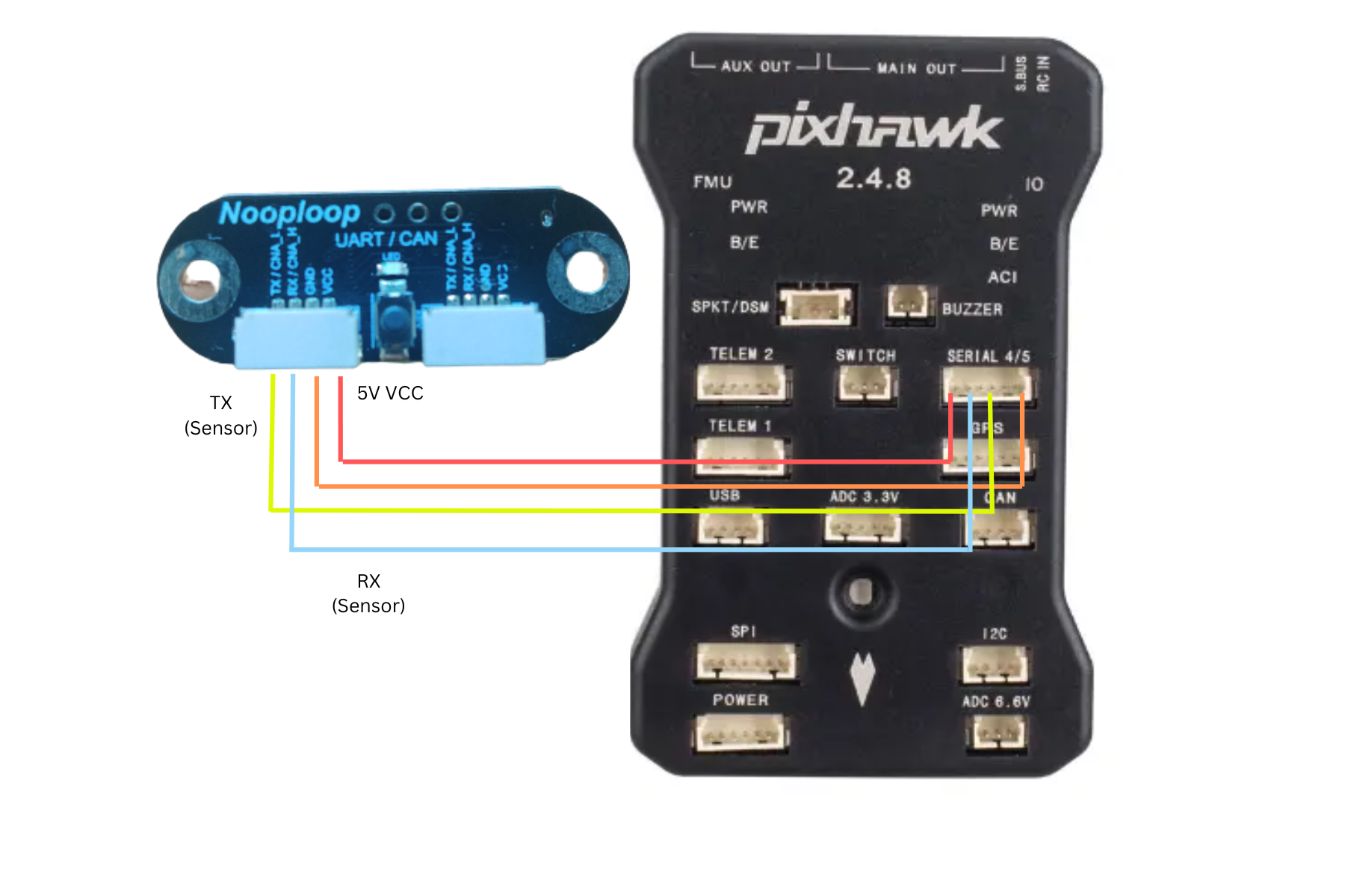 You can use any spare autopilot Serial/UART port. The diagram below shows how to connect to SERIAL4 and the example parameters will be shown assuming this Serial port is used.