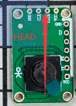 The flow sensor should be mounted with the head of the little man facing forward and the camera facing down, as shown in the image above.