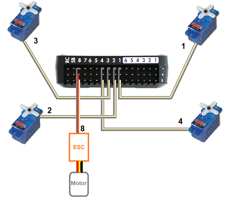 the motor’s ESC should be connected to the autopilot’s channel 8 output