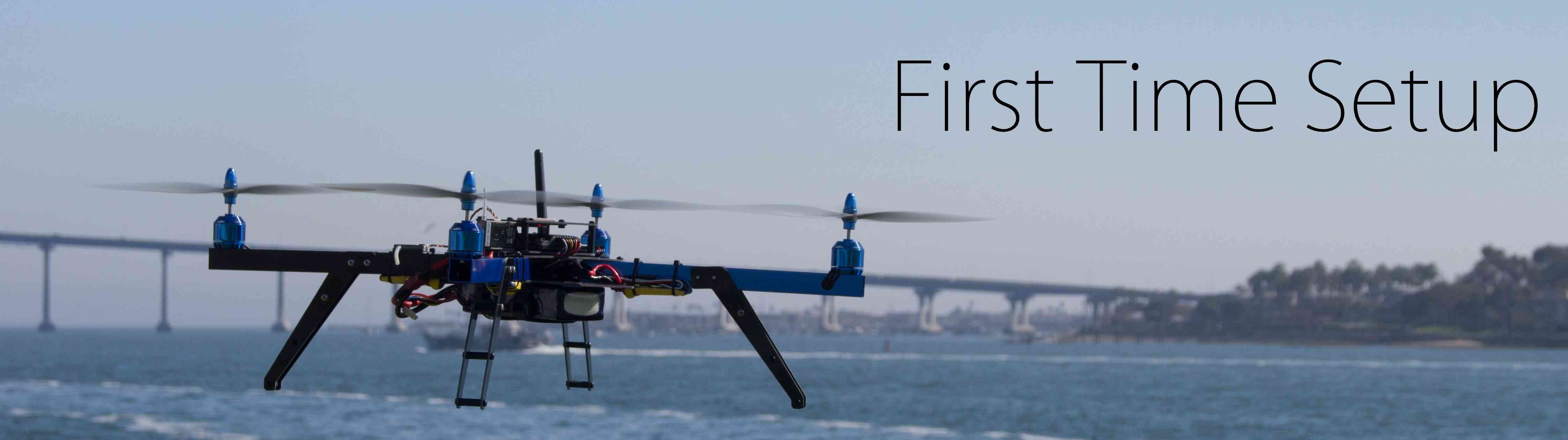 First-time setup of the autopilot includes downloading and installing a Ground Control Station (GCS), mounting the autopilot to the frame, connecting it to the receiver, power and motors, and then performing initial configuration and calibration.