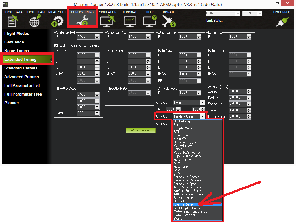 Mission Planner: Setting Manual Landing Gear Control¶