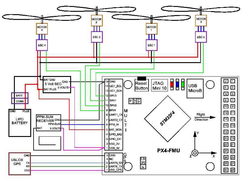 PX4-FMU Only Wiring Diagram for QuadCopters using a PPM-SUM receiver¶