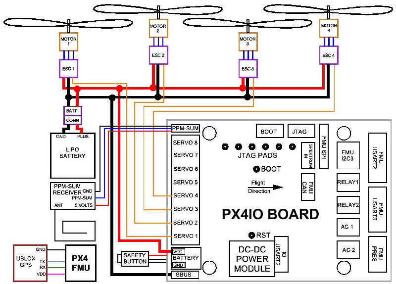 This article provides an overview of the PX4FMU and PX4IO Board Copter Wiring/Installation.