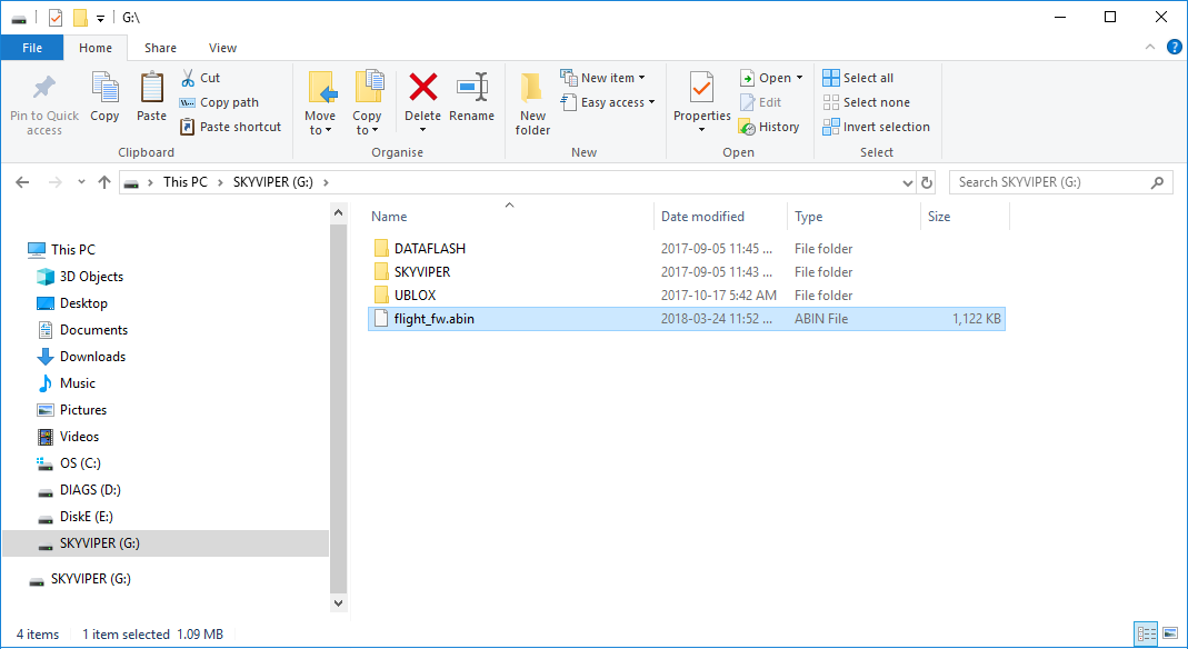 copy the firmware into the top directory of the SD card and then rename it to “flight_fw.abin”