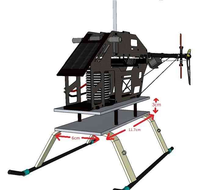 Attach one carbon fibre plate to the body, the other to the landing gear