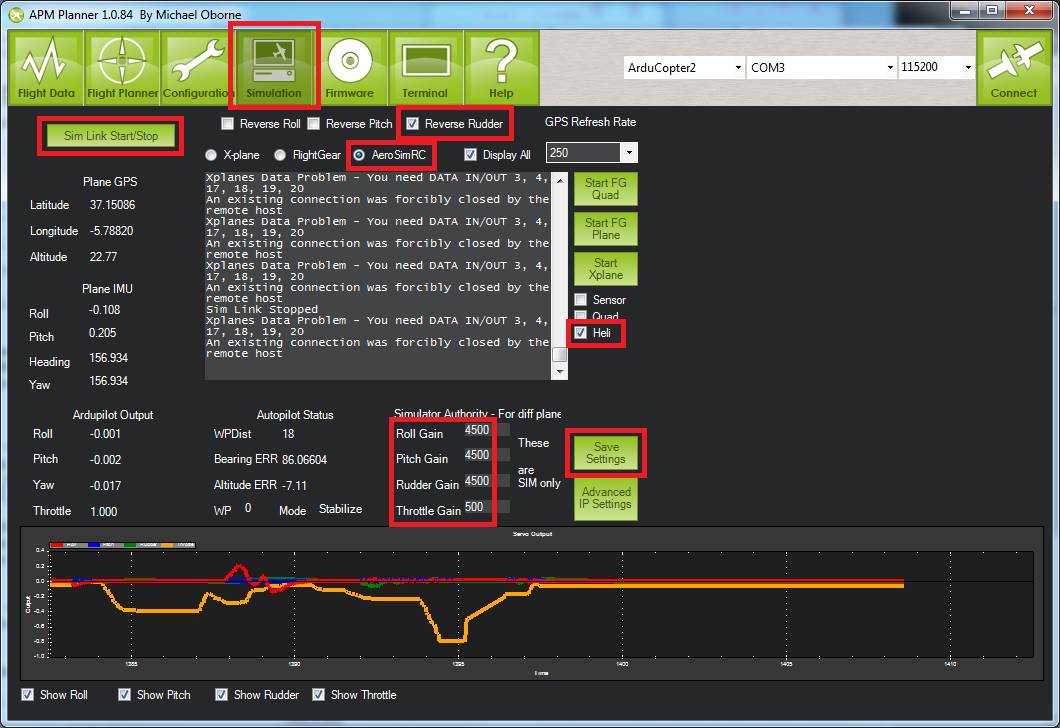 push SimLink Start/Stop button, you should see “Sim Link Started”