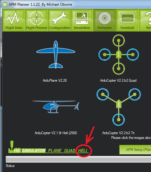 On the AP Mission Planner you can find the Heli button on the bottom left of the firmware upload screen.