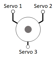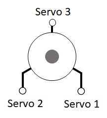 Below are the swashplate type selections using the H_SW_TYPE parameter. The diagrams shown label the servo attach positions as Servo 1, Servo 2 and Servo 3 for the three servo swashplate types. These also correspond to the default output functions for servo outputs 1 thru 3 on the autopilot for the servos used with these swashplate types.