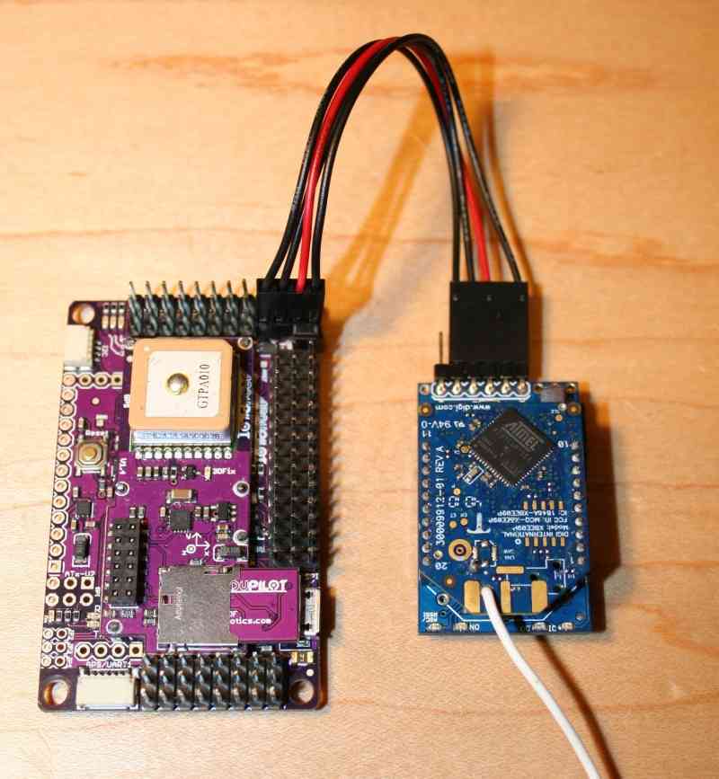 Additionally, if you want to test the range of your Xbee link, connect the plane-side Xbee module’s RX and TX pins together to create a loopback circuit and use the X-CTU utility’s range test function. For the modules we are using you should get around a mile.