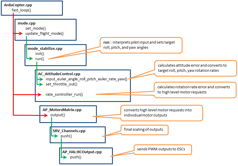 The image below shows the architecture of manual modes (i.e. Stabilize, Acro, Drift)