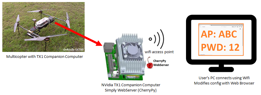 The current release automatically creates a Wifi Access Point on startup, allows DataFlash logging to the companion computer and “simple” real-time video streaming from a camera on the drone to the ground station.