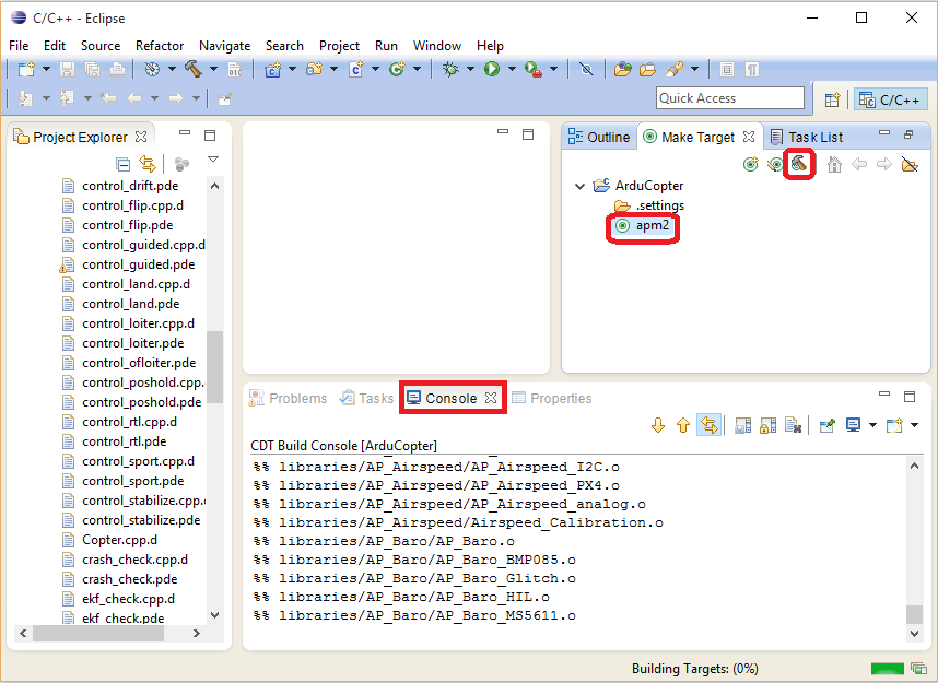 This article shows how to build ArduPilot for APM2.x on Windows using the Eclipse IDE.