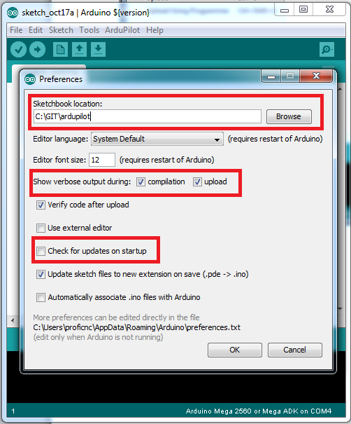 Archived: Building ArduPilot for APM2.x on Windows with Arduino¶