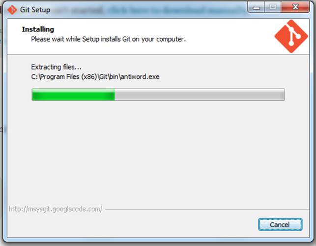 In your C: drive, make a folder called GIT (C:\GIT on my computer). Navigate to the folder Windows Explorer