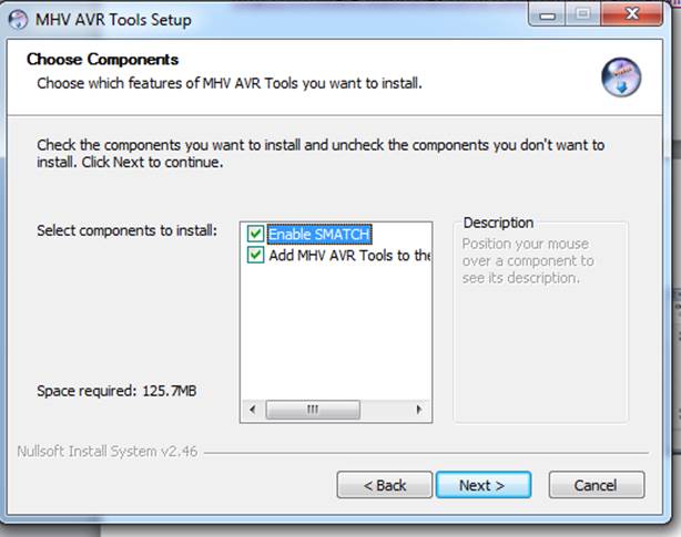 Select the Next button in the setup wizard screen then select the Install button for MHV AVR Tools