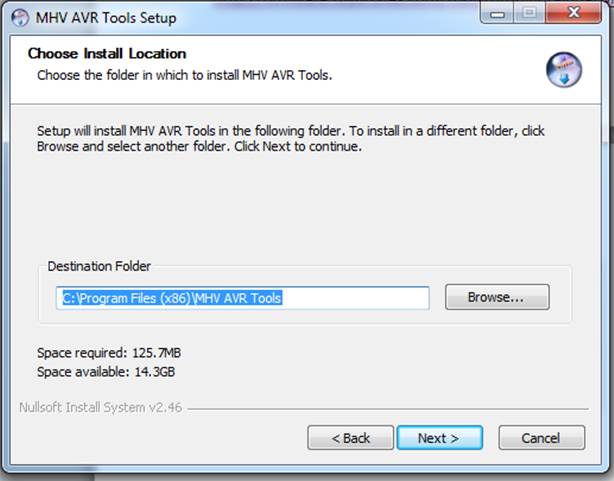 Install MHV_AVR_Tools to its default location¶