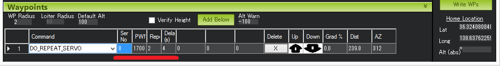 Mission Planner Settingsfor DO_REPEAT_SERVO command¶