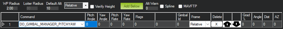 Mission PlannerSettings for DO_GIMBAL_MANAGE_PITCHYAW command¶