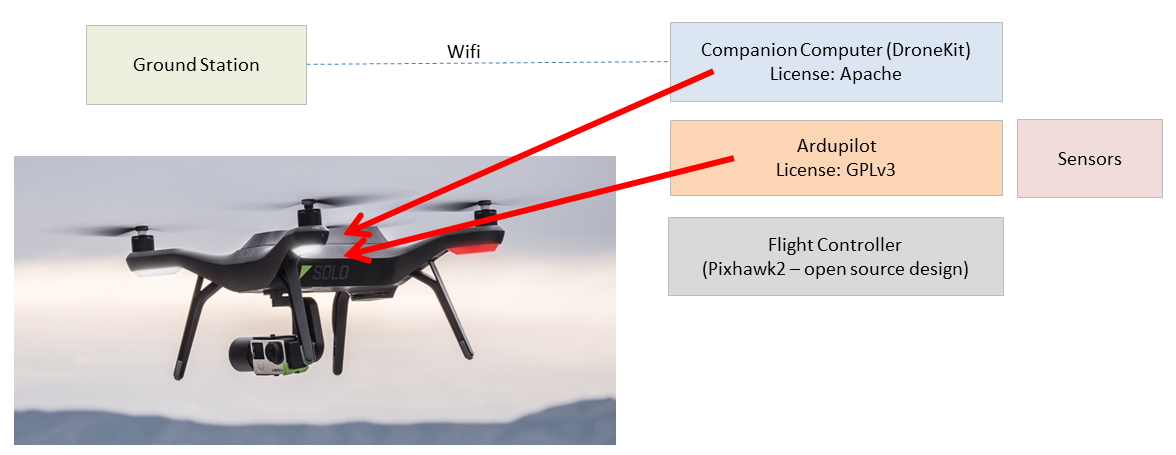 ArduPilot is open source (GPLv3) but you can use a companion computer to run closed source code to ease integrating ArduPilot into your corporate systems or to add higher level features to differentiate yourself from your rivals. You build on the reliability of the free low-level flight code so you can instead invest in the higher level features. We believe ArduPilot is as reliable as the leading closed system and you are not beholden to a particular manufacturer. Below is an image of how one manufacturer accomplished this.