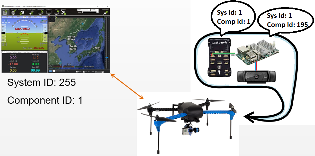 target_system) and component id (target_component) and if these don’t match the vehicle’s <sysid,compid> the messages are forwarded to the appropriate channel using the array above.Messages that don’t have a target <sysid,compid> are processed by the vehicle and then forwarded to each known system/component.