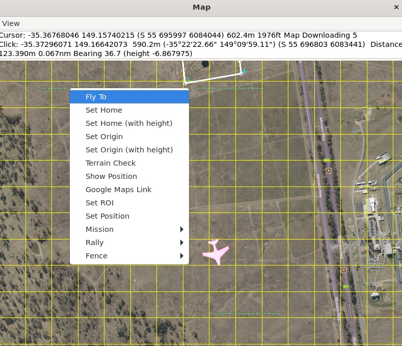 The easiest way to set a target point is to right-click on the map where you want to go, select Fly to, and then enter the target altitude.