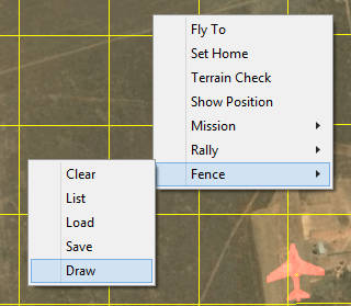A GeoFence is is a virtual barrier that Plane uses to constrain the movement of the vehicle (and move it to a safe location if control is lost). Plane allows you to specify an arbitrarily shaped region on the map for the fence, and an upper and lower altitude. If the fence is breached, Plane will fly to the centre of the fence and circle (or a rally poin)t. Geo-Fencing in Plane describes the fence in more detail.