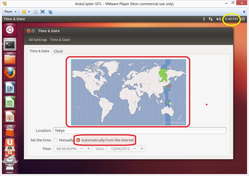 Set the clock by double clicking on the top right corner, select your location on the map and “Set the time:” to “Automatically from the internet”