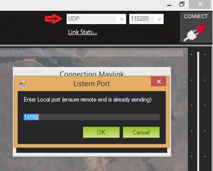 This tells us that we can connect Mission Planner to either UDP port 14550 or 14551, as shown on the dialog below.