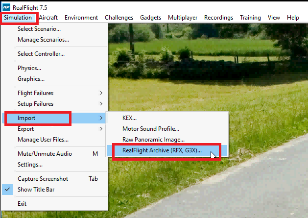 on RealFlight select Simulation >> Import >> RealFlight Archive (RFX, G3X) and select the model you’re interested in
