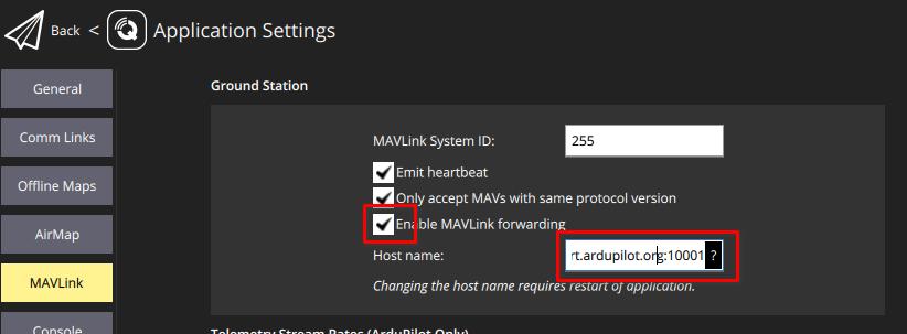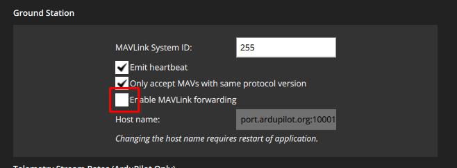 Please remember to untick the “Enable MAVLink forwarding” option when your support session is completed!