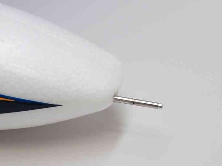 When you place the airspeed sensor in your aircraft, use the pitot tube set in the kit (the kit comes with a single tube to measure both static and total pressure). In the case of the EasyStar, you’ll need to push it through the foam in the cockpit so it points straight into the airstream (drill or cut a small hole in the foam first). Make sure the holes in the side of the tube are not covered. They should be at least 1 centimeter out past the nose. First connect the two tubes coming out the back to the airspeed sensor. The tube coming straight out the back should go into the top port and the tube exiting at an angle should connect to the bottom port on the airspeed sensor.