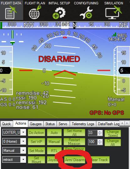 Before you can fly your plane you need to arm it. Arming the aircraft before flight has two purposes: