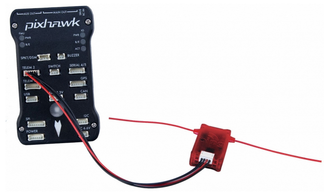 The ADSB receivers should be connected to an autopilot’s serial port. The receiver should be mounted so that the antenna is oriented vertically.