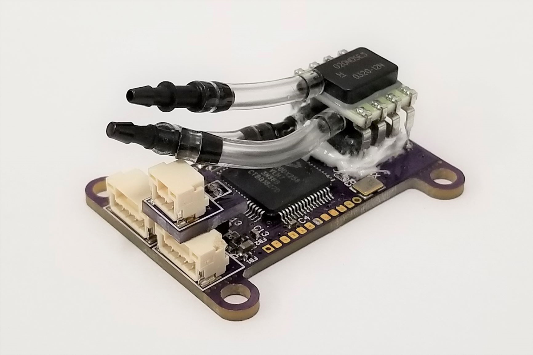 The Avionics Anonymous Air Data Computer is tiny, richly-featured Air Data Computer (ADC) for small unmanned airplanes. It includes an MS5611 barometric pressure sensor for 10cm-resolution altitude, a Honeywell RSC-series differential pressure transducer for extremely accurate airspeed, and a thermistor interface with high-resolution convertor for air temperature measurement with better than 1 degree precision. The device interfaces to your autopilot via a robust DroneCAN interface, which provides high reliability connections to peripherals over greater distances than I2C.