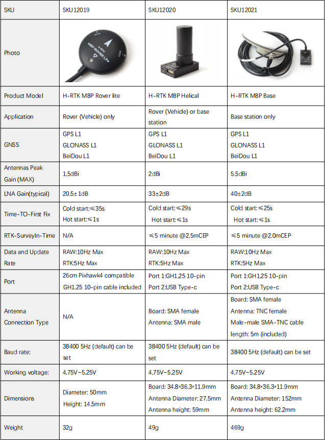 There are three models of Holybro H-RTK M8P to choose from, each with different antenna design to meet different needs: